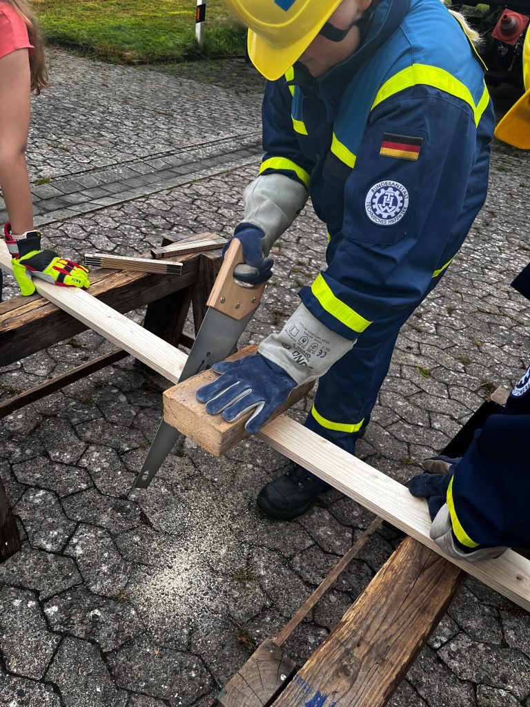 Wir sind aus der Sommerpause zurück 💪 mit viel Spaß und Action haben wir bei unserem ersten Jugenddienst nach den Sommerferien wieder losgelegt. Zum Wiederreinkommen sind wir mit spaßigen Team-Spielen gestartet. Danach haben wir in Gruppen eine kleine Leonardo-Gruppe aufgebaut und die Funktionen in unseren Ortsverband wiederholt. Highlight war aber ganz klar das Zuschneiden von Kanthölzern 🪚 Dann hieß es nämlich: Abmessen, einzeichnen, absägen. Wir freuen uns auf den nächsten Jugenddienst. Denn dann werden die Bretter weiterverarbeitet. Also seid gespannt 😋
